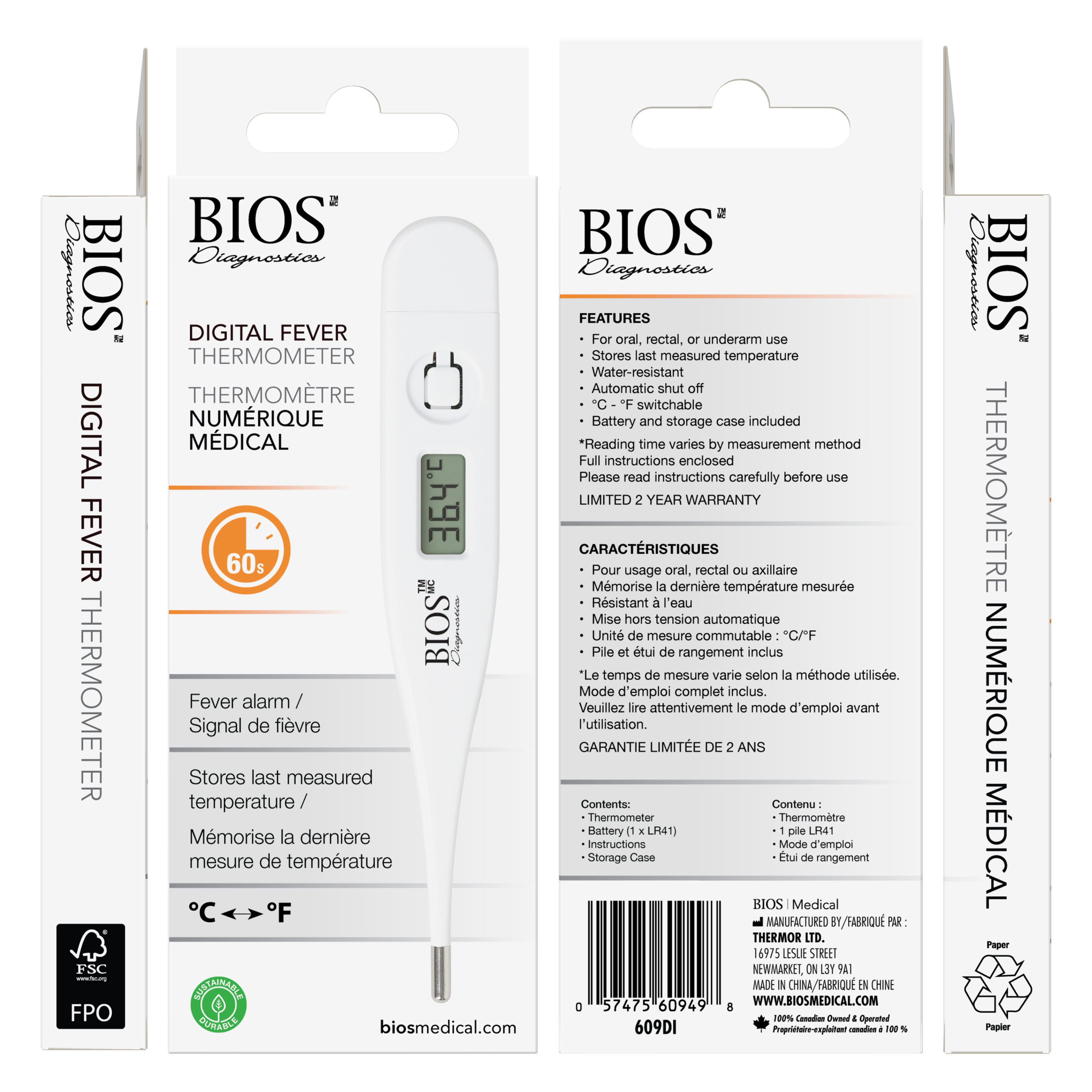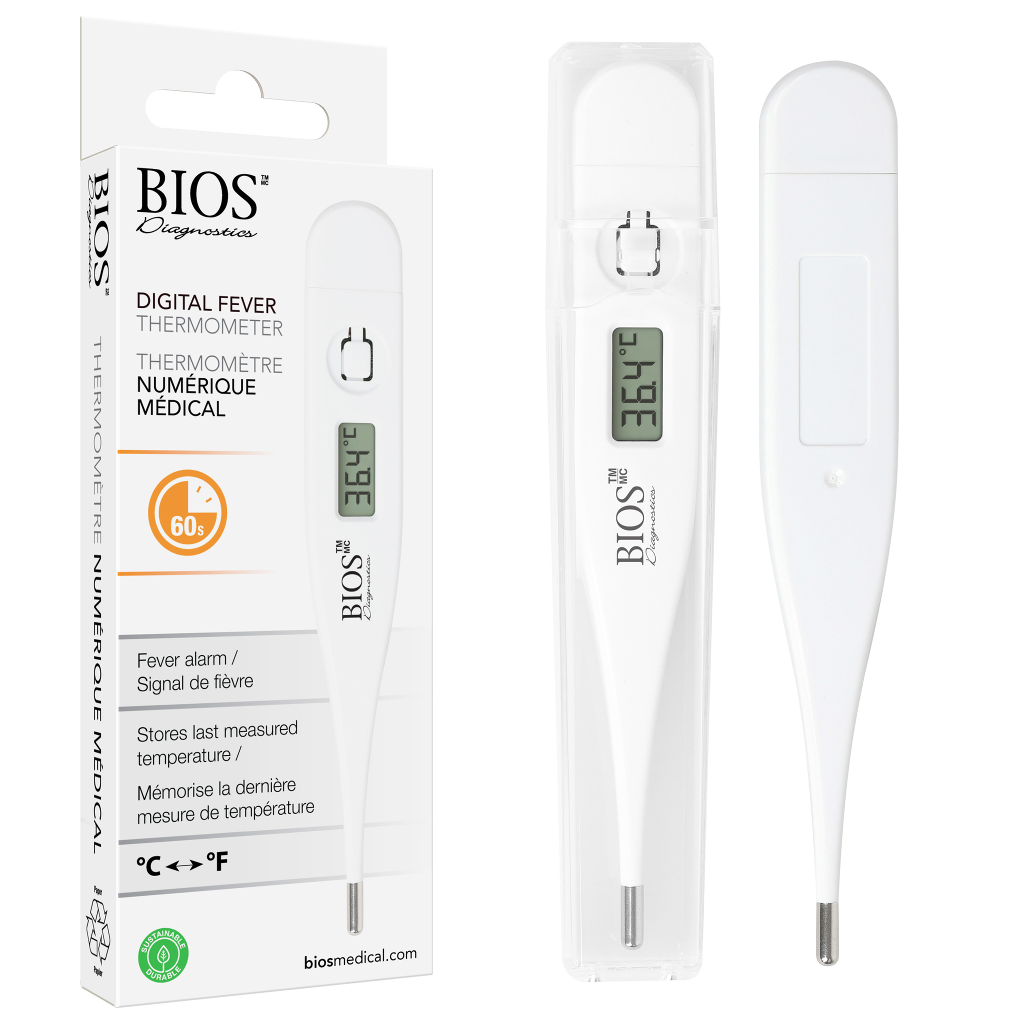 Modèle de base, économique. Ce thermomètre affiche la température en seulement 60 secondes.