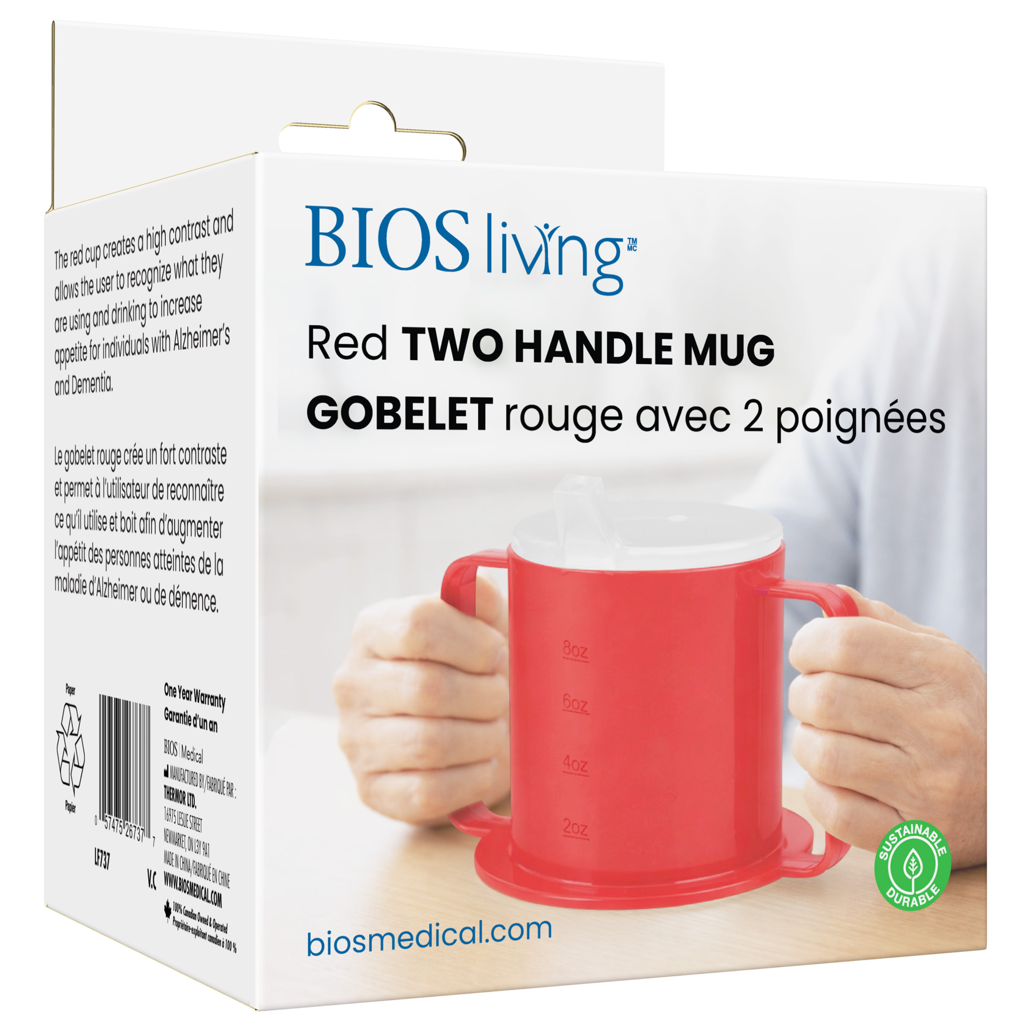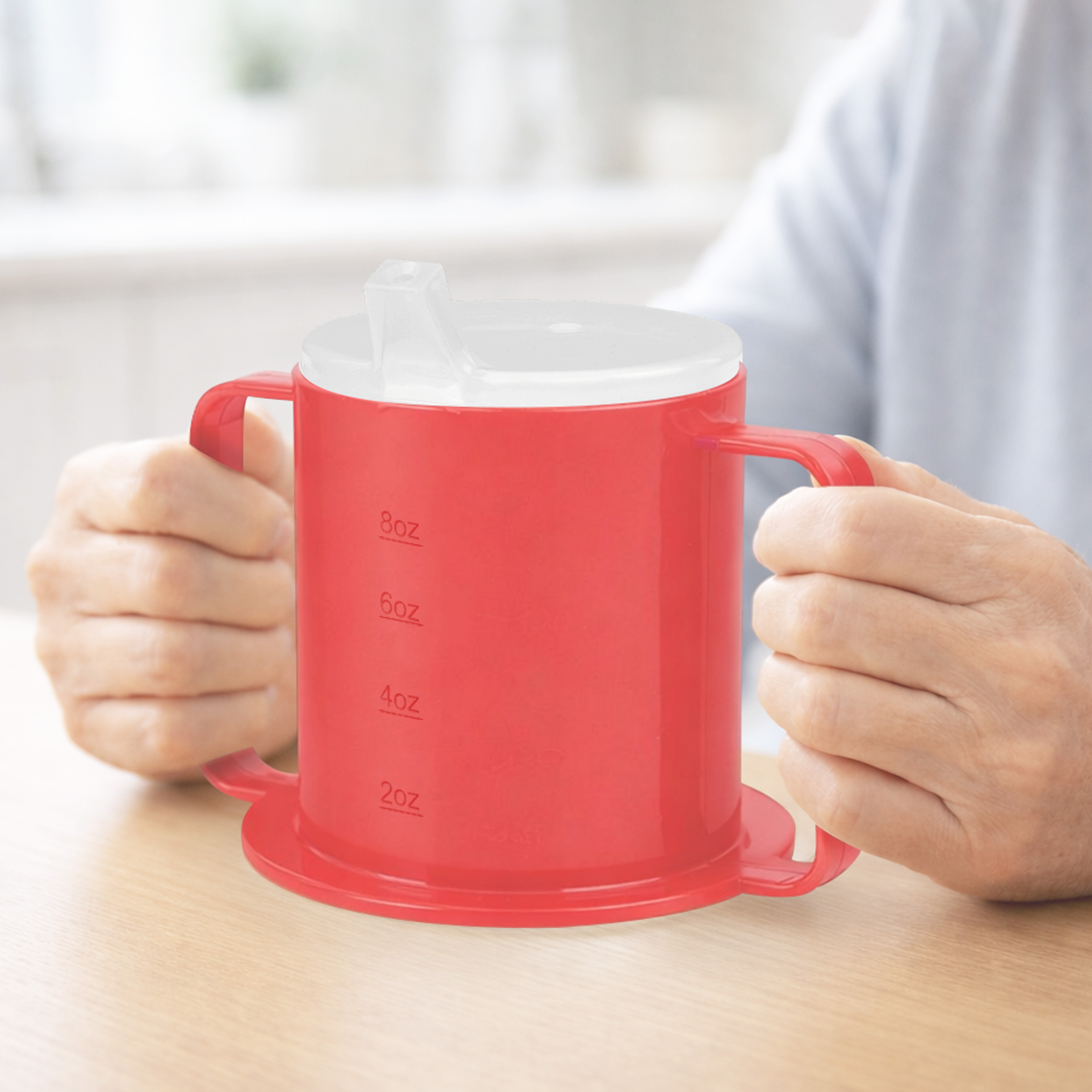 Un gobelet à deux anses en plastique rouge qui permet de boire aisément et de le trouver facilement. La base extra-large offre plus de stabilité et limite les dégâts causés par les renversements. Il comporte deux couvercles : un bec verseur profilé pour s’adapter confortablement dans la bouche et un couvercle anti-renversement pour prévenir les éclaboussures et aider à diriger le débit du liquide directement dans la bouche. À l’épreuve du lave-vaisselle.