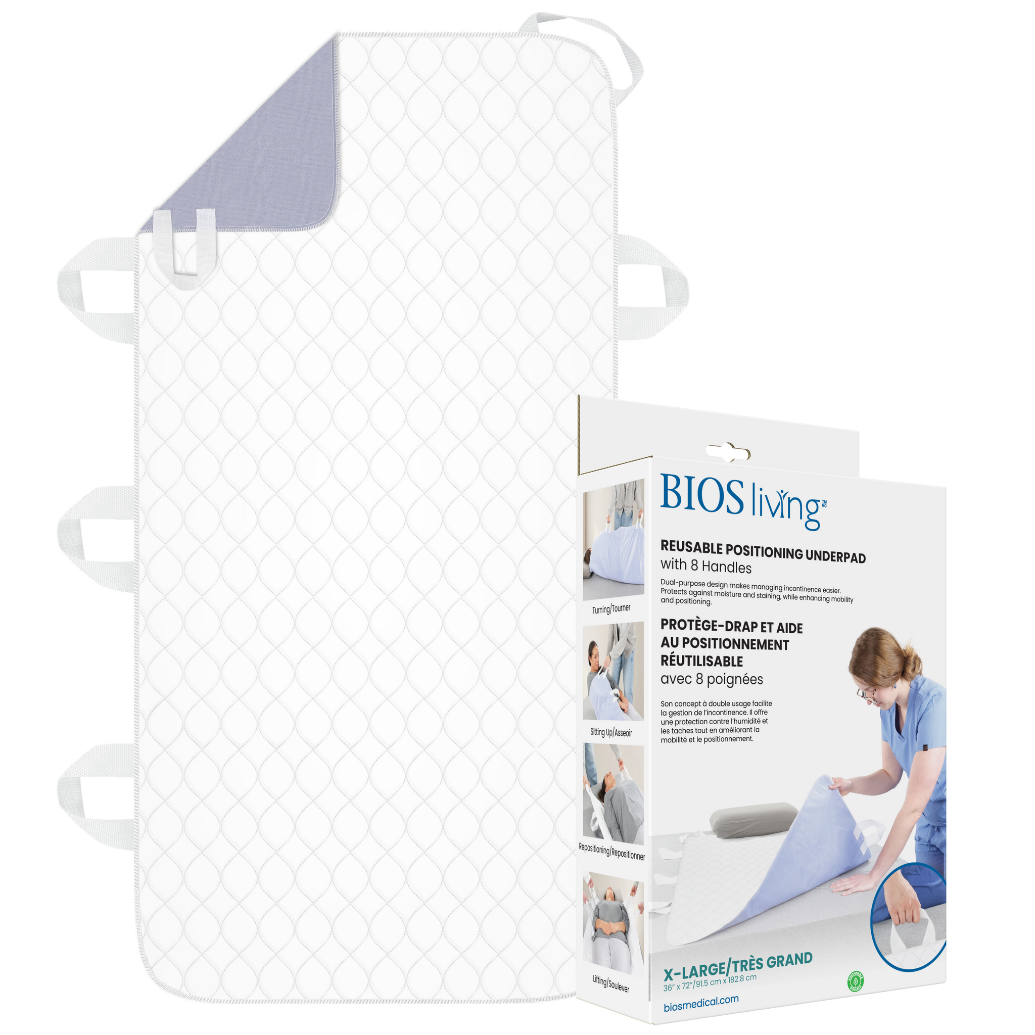 Notre protège-drap réutilisable absorbant avec poignées utilise un concept à double usage : il sert à la fois de protège-drap et de coussin de positionnement. Il offre une solution polyvalente et pratique qui privilégie la mobilité de l’utilisateur, la santé de la peau, l’hygiène, la protection de la literie et les soins liés à l’incontinence.