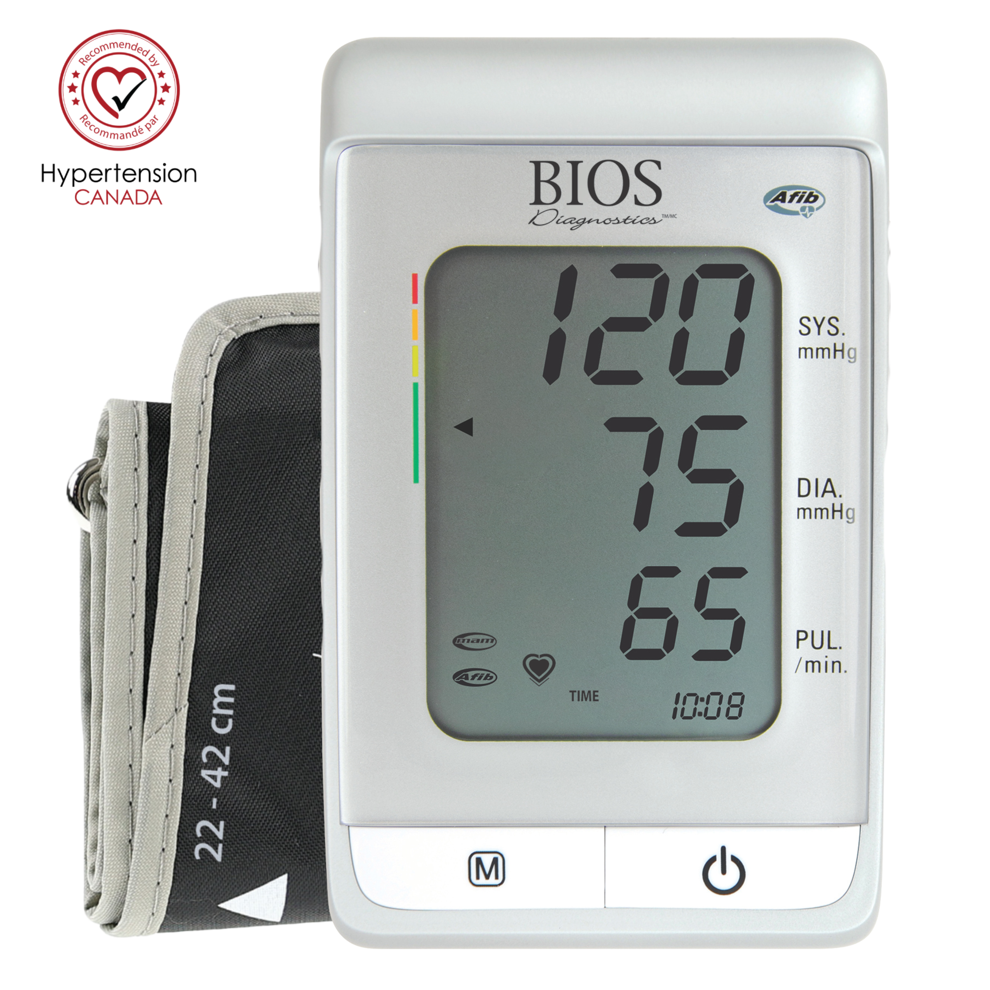 The BIOS Diagnostics Blood Pressure Monitor – with Atrial Fibrillation Screening, has built-in technology to screen for Afib. Afib is a serious heart rhythm abnormality that accounts for 15% of strokes. Once detected, it can be treated effectively. Patented MAM averaging and advanced blood pressure PC software ensure precise readings and detailed heart health analysis through your Blood Pressure Monitor – with Atrial Fibrillation Screening.